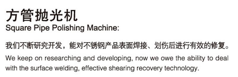 方拋光機(jī)管適用于正方形和矩形截面的各種金屬外表面的拋光。整機(jī)由拋光主機(jī)、給料裝置、出料裝置和控制系統(tǒng)四部份組成。方管拋光機(jī)根據(jù)拋管范圍和配置不同可分為基本型拋光機(jī)和高配型方管拋光機(jī)。根據(jù)拋光頭的數(shù)量不同又分為28頭、32頭、36頭方拋光機(jī)。經(jīng)該機(jī)拋磨后,表面粗糙度可達(dá)500#-700#。