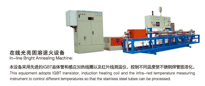 適用于將不銹鋼管Tig和激光焊接生產(chǎn)線,在線加熱至1050℃,隨后至于氫氣保護(hù)下,快速冷卻至室溫的專用設(shè)備,此設(shè)備必須安裝在定徑和校直工序之間。
